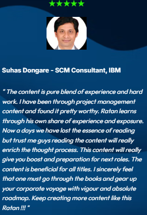 " The content is pure blend of experience and hard work. I have been through project management content and found it pretty worthy. Ratan learns through his own share of experience and exposure. Now a days we have lost the essence of reading but trust me guys reading the content will really enrich the thought process. This content will really give you boost and preparation for next roles. The content is beneficial for all titles. I sincerely feel that one must go through the books and gear up your corporate voyage with vigour and absolute roadmap. Keep creating more content like this Ratan !!! "
